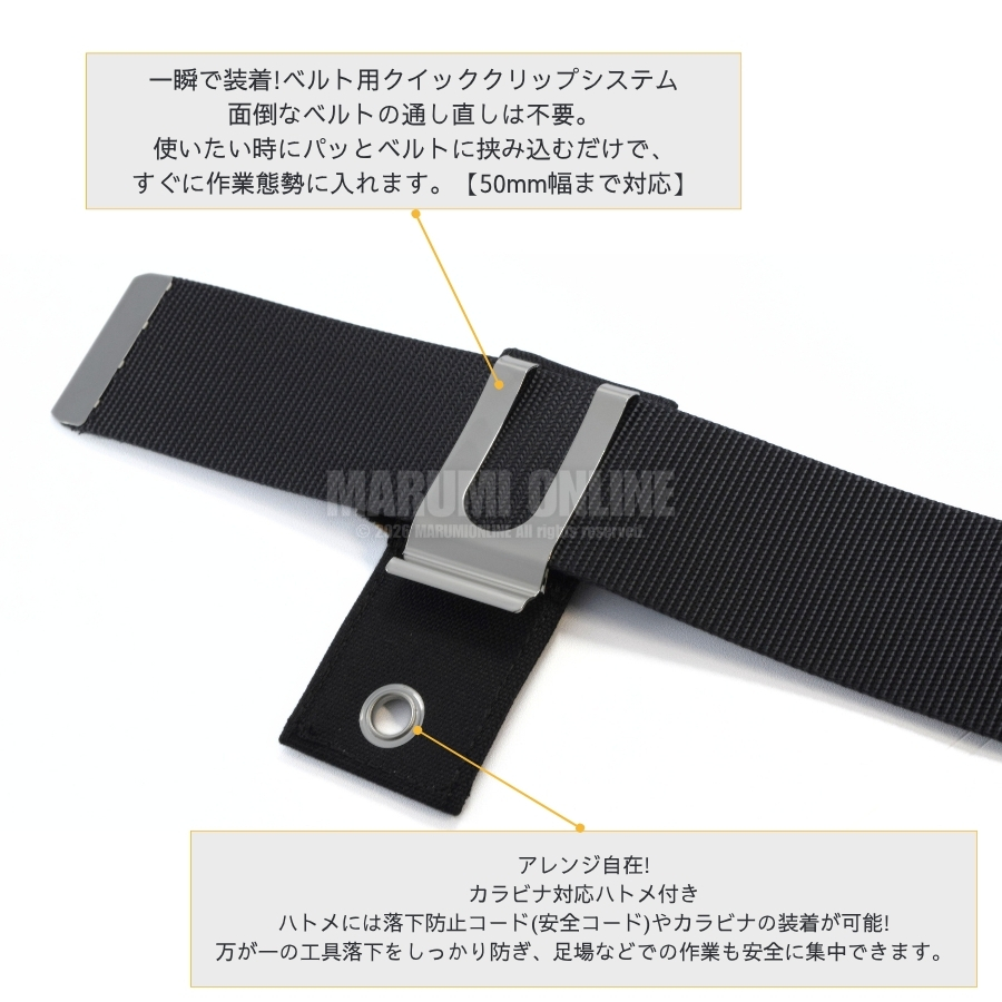 クイッククリップシステムにより、ベルトに差し込むだけで簡単装着。