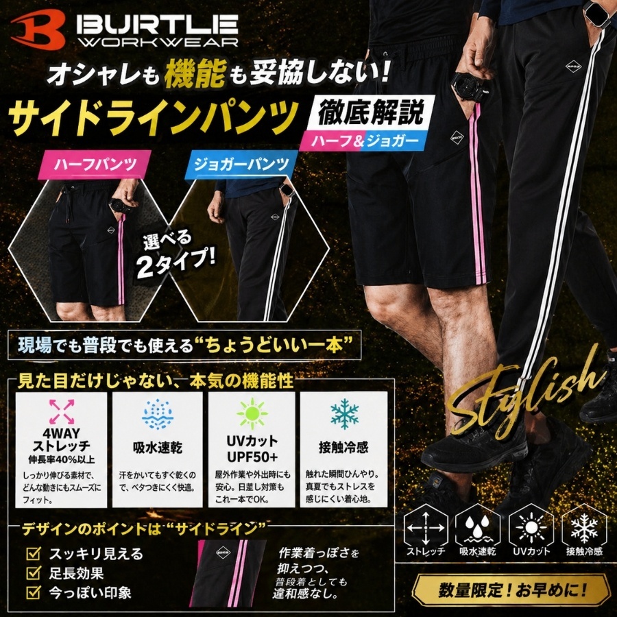 【数量限定】オシャレも機能も妥協しない!サイドラインパンツ徹底解説(ハーフ&ジョガー)