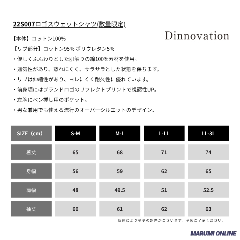 メンズ ロゴスウェットシャツ ディノベーション 作業着 作業服 コットン 綿 トレーナー 長袖 おしゃれ かっこいい 秋冬 dinnovation 22S007