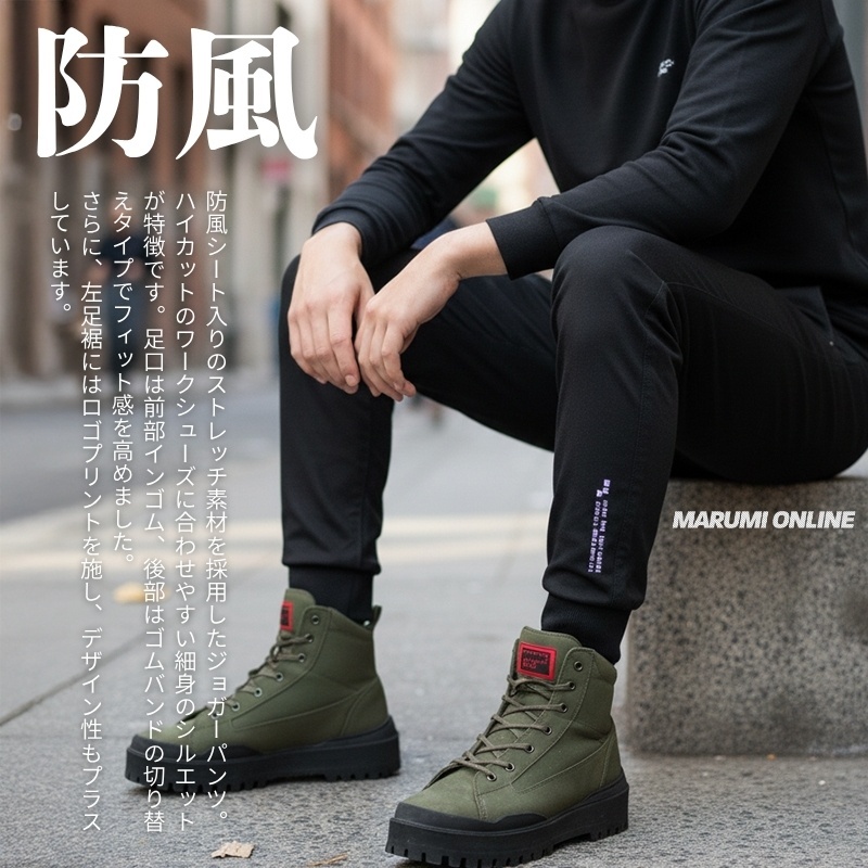 ■防風素材・後ろポケット・ジョガータイプ・ストレッチ・ベルトループ