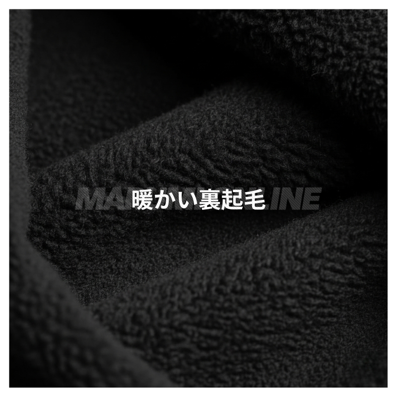 裏起毛のポリエステル素材を使用し、型くずれしにくくタフに着こなせます。