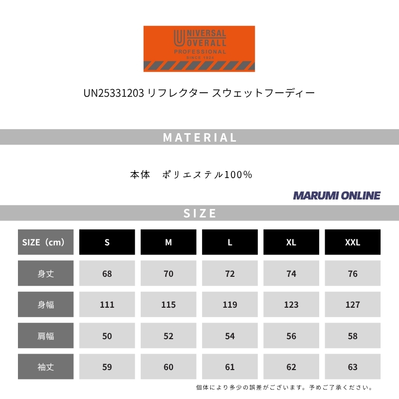 ユニバーサルオーバーオール プロフェッショナル 作業着 作業服 リフレクター 長袖 パーカー フーディ スウェット 裏起毛 UN25332203 [UN25332203]