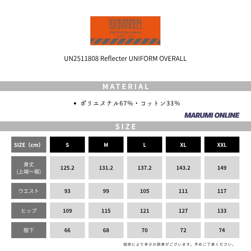 ユニバーサルオーバーオール プロフェッショナル 作業着 作業服 ハイビズ リフレクター カバーオール オーバーオール サロペット UN2511805 [UN2511808]