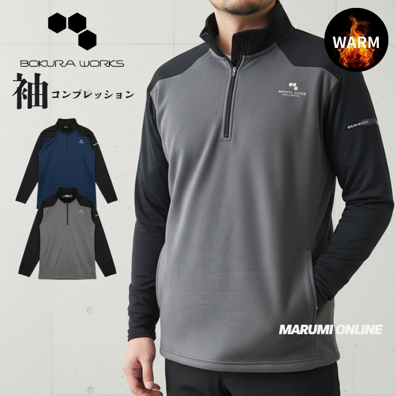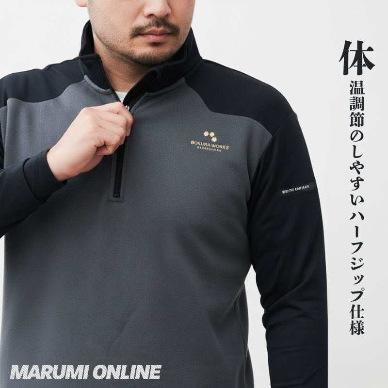 ボクラワークス 秋冬 防寒 長袖ジップアップ マイクロフリース 裏起毛 ストレッチ ハーフジップ
