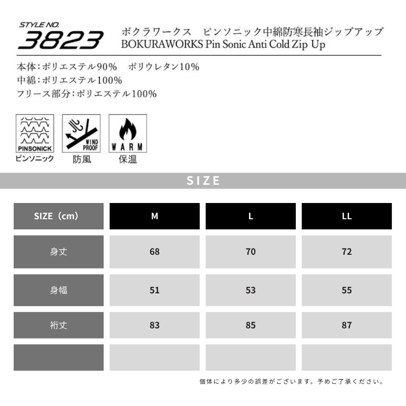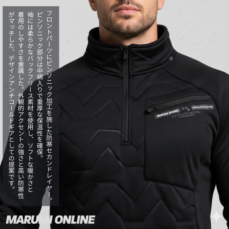 ボクラワークス 秋冬 防寒 長袖 ピンソニック 中綿 マイクロフリース 裏起毛 ストレッチ ハーフジップ