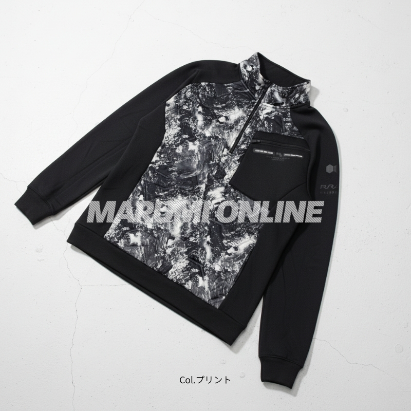 ボクラワークス 秋冬 防寒 長袖 ピンソニック 中綿 マイクロフリース 裏起毛 ストレッチ ハーフジップ [KN3823]