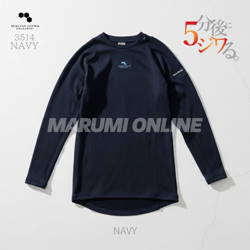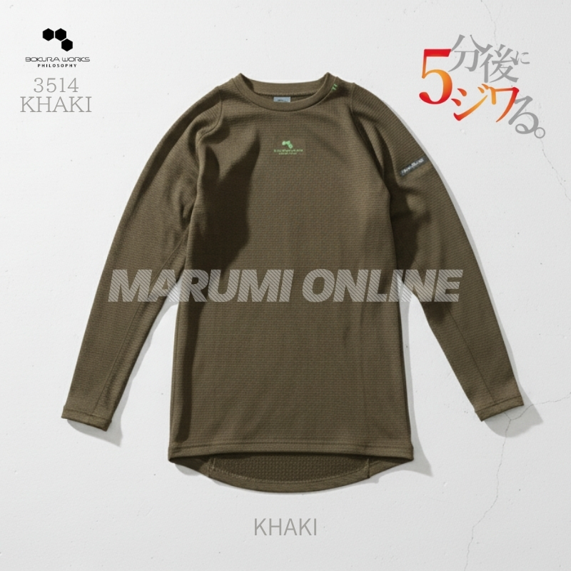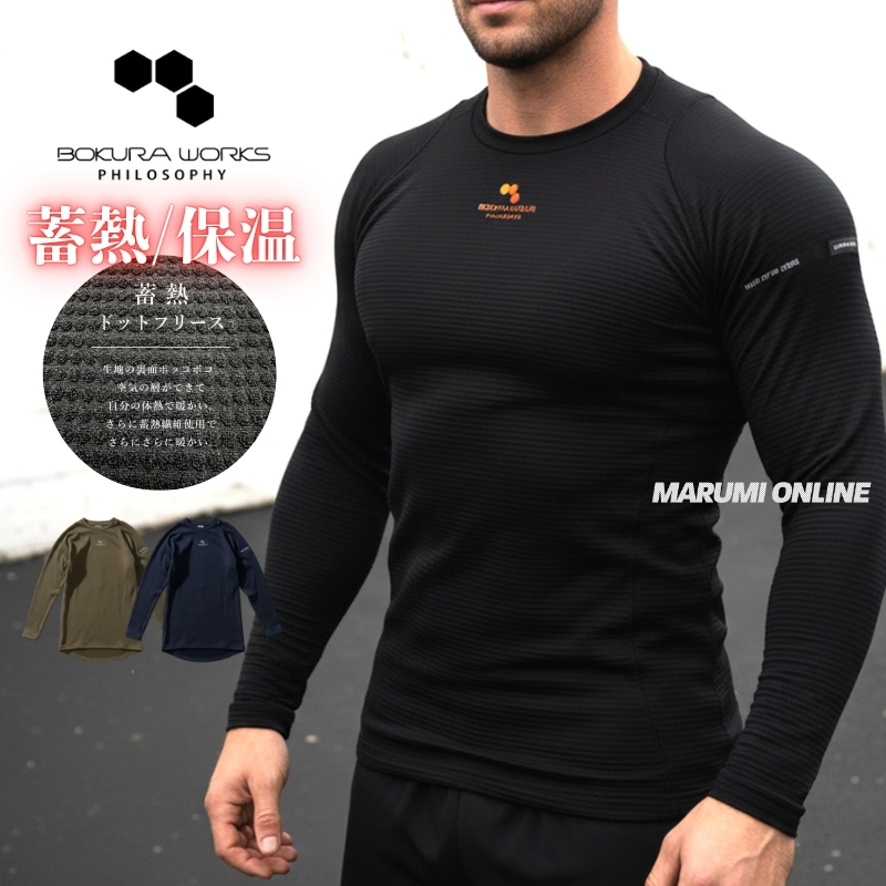 ボクラワークス 秋冬 防寒 裏ドットフリース長袖クルーネック インナー ストレッチ 加圧 コンプレッション 蓄熱 保温 [KN3514]
