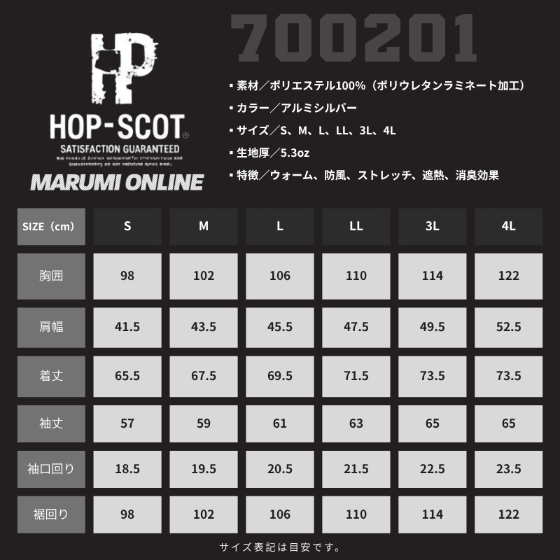 ホップスコット HOP-SCOT 暖 防寒 保温 冬 フレクシーヒート PU アルミ 防風 ストレッチ シャツ 仕事 DIY スポーツ キャンプ アウトドア 700201