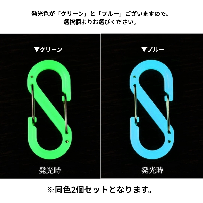 OUROBOROS ウロボロス S字 Sビナ カラビナ 朧 蓄光タイプ (グリーン・ブルー)軽量 頑丈 2個セット [OUROBOROS-001]