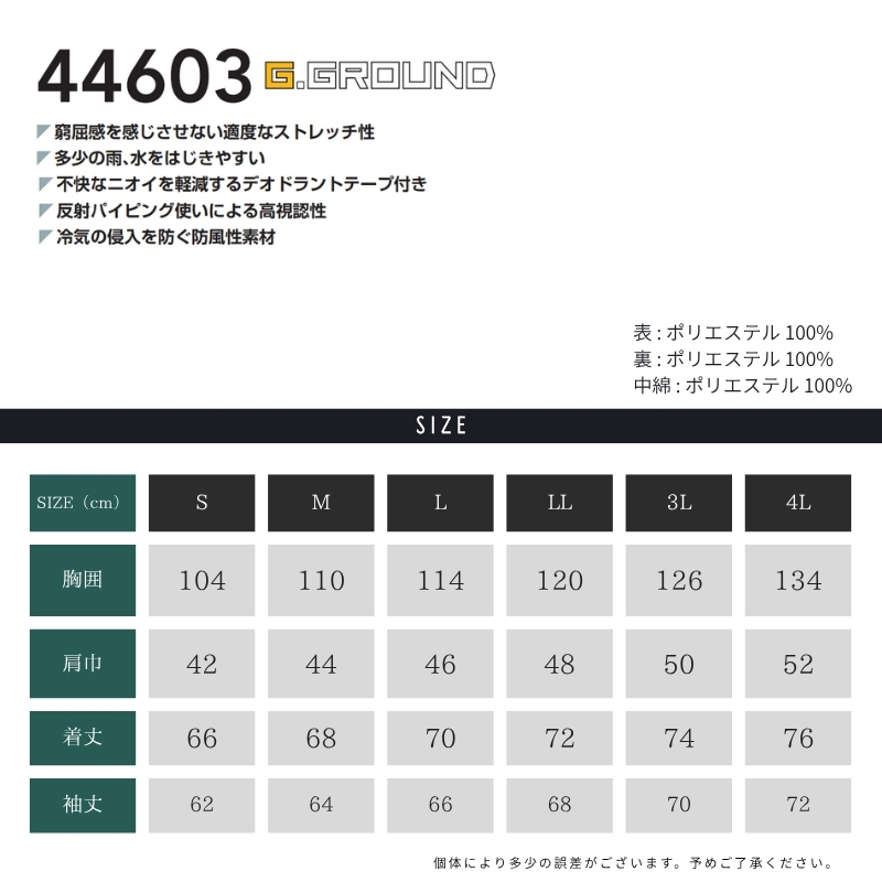 防寒 アウター メンズ 秋冬 中綿 ストレッチ 防風 撥水 軽量 作業着 作業服 かっこいい おしゃれ 桑和 ジーグラウンド 44603 [G44603]