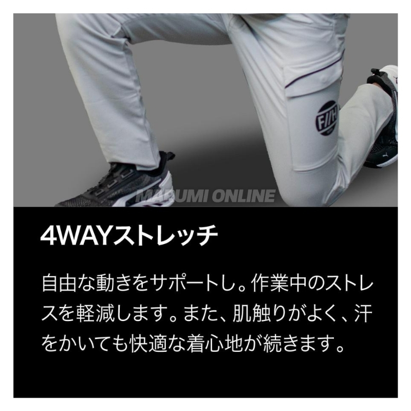 4WAYストレッチ素材があらゆる動きにフィットし、しゃがむ・伸ばす・ひねる動作もストレスゼロ。長時間の作業でも快適さが続きます。