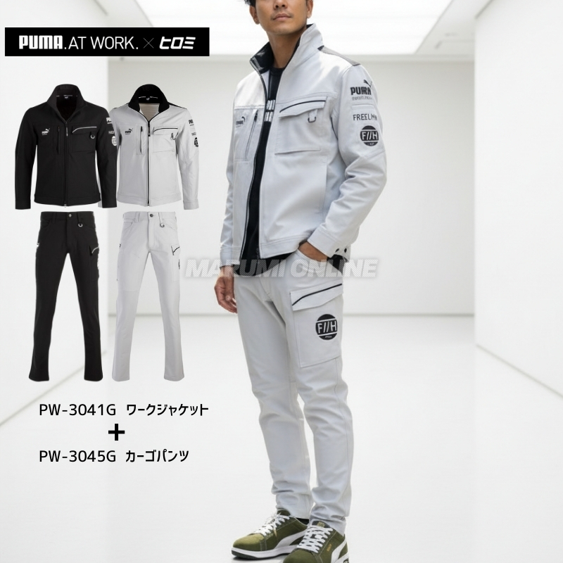 【限定商品】【上下セット】PUMA.AT WORK. x ヒロミ コラボ PW-3041G + PW-3045G ワークジャケット カーゴパンツ 作業服 作業着 長袖 プーマ×ヒロミコラボ [PW3041G-PW3045G]