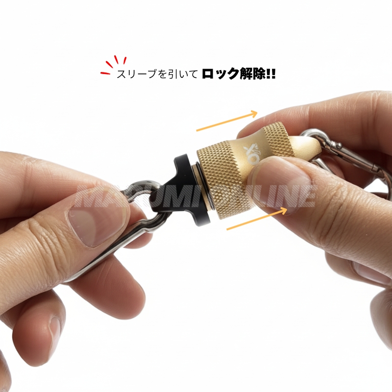 タックルを外すときはスリーブを引くだけ。装着はマグネットの磁力でオートロック!