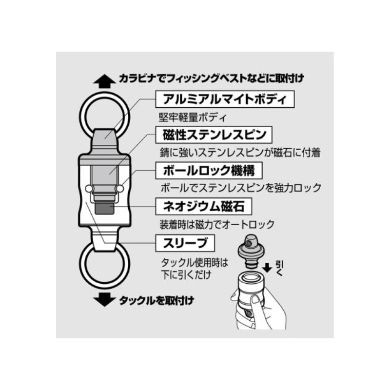 大事なタックルやギャフ、工具が外れない、独自機構のマグネットジョインターです。