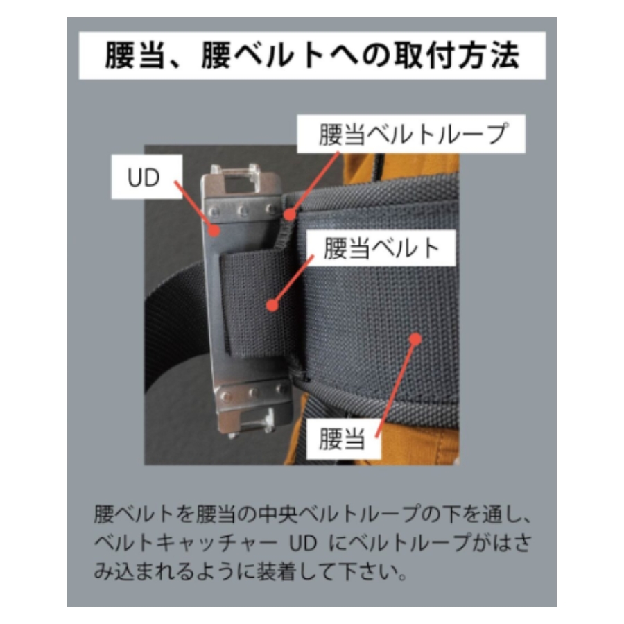 3点セットはUDHを介してBV2、UDと連結させることにより、腰道具とハーネスの着脱をしやすくし、荷重負担を均等にするシステム商品です。