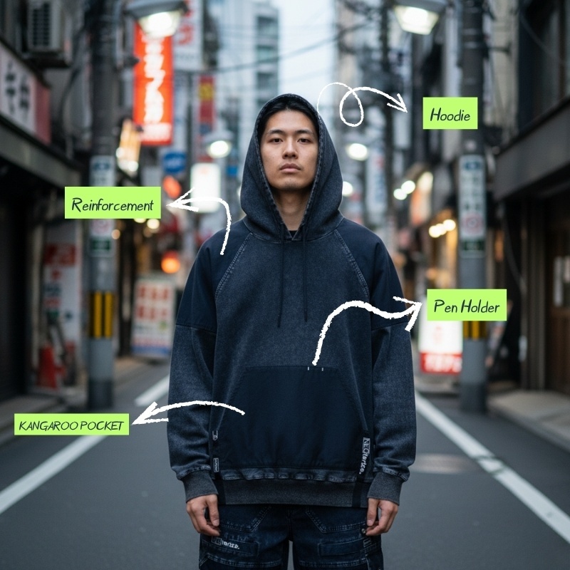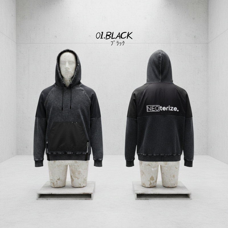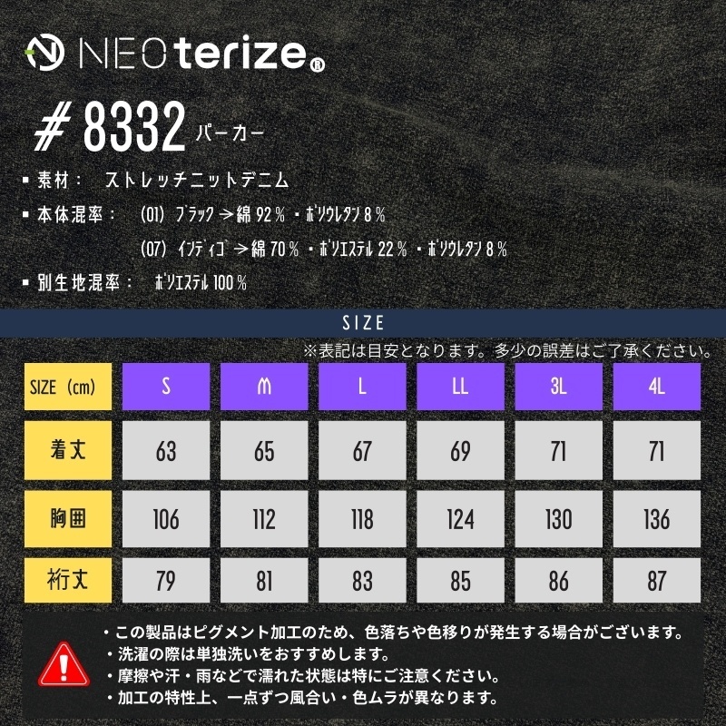 ネオテライズ NEOterize おしゃれ かっこいい 作業着 作業服 秋冬 ニットデニム ストレッチ 長袖 プルオーバー パーカー フーディ 8332