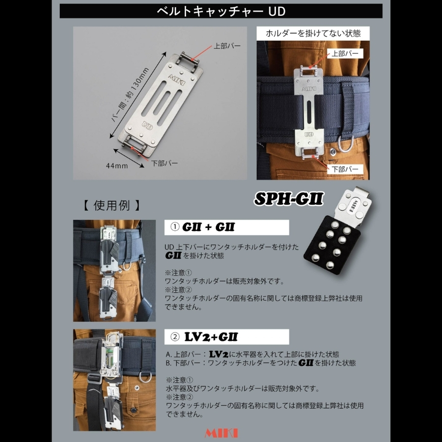 MIKI 三貴 ミキ 工具差し SPH ツールホルダー用 プロ用 ベルトキャッチャーUD(上下SPHバー) ベルトストラップ ベルトループ [SPH-UD]