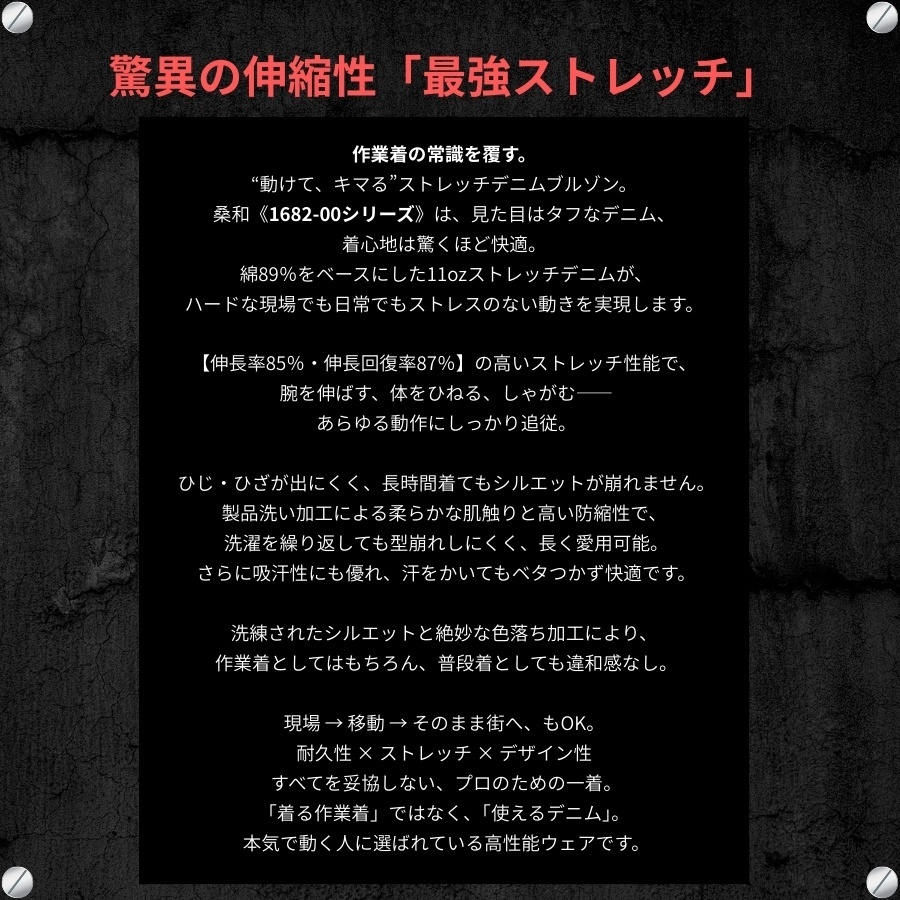 マルミオンラインショップ作業着 作業服 デニム ストレッチ かっこいい おしゃれ 上着 ジャケット ブルゾン 11オンス ヘビーウエイト 桑和 G.G 1682-00GG1682-00