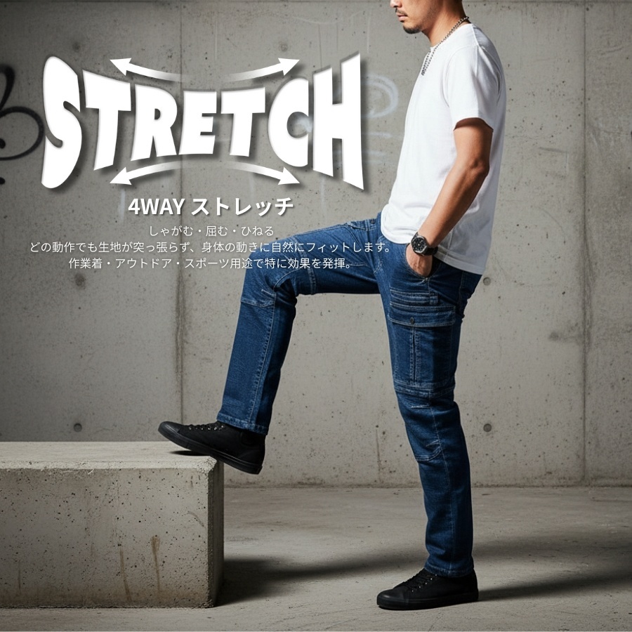 作業着 作業服 デニム ストレッチ かっこいい おしゃれ カーゴパンツ ワークパンツ 作業ズボン ヘビーウエイト 02542