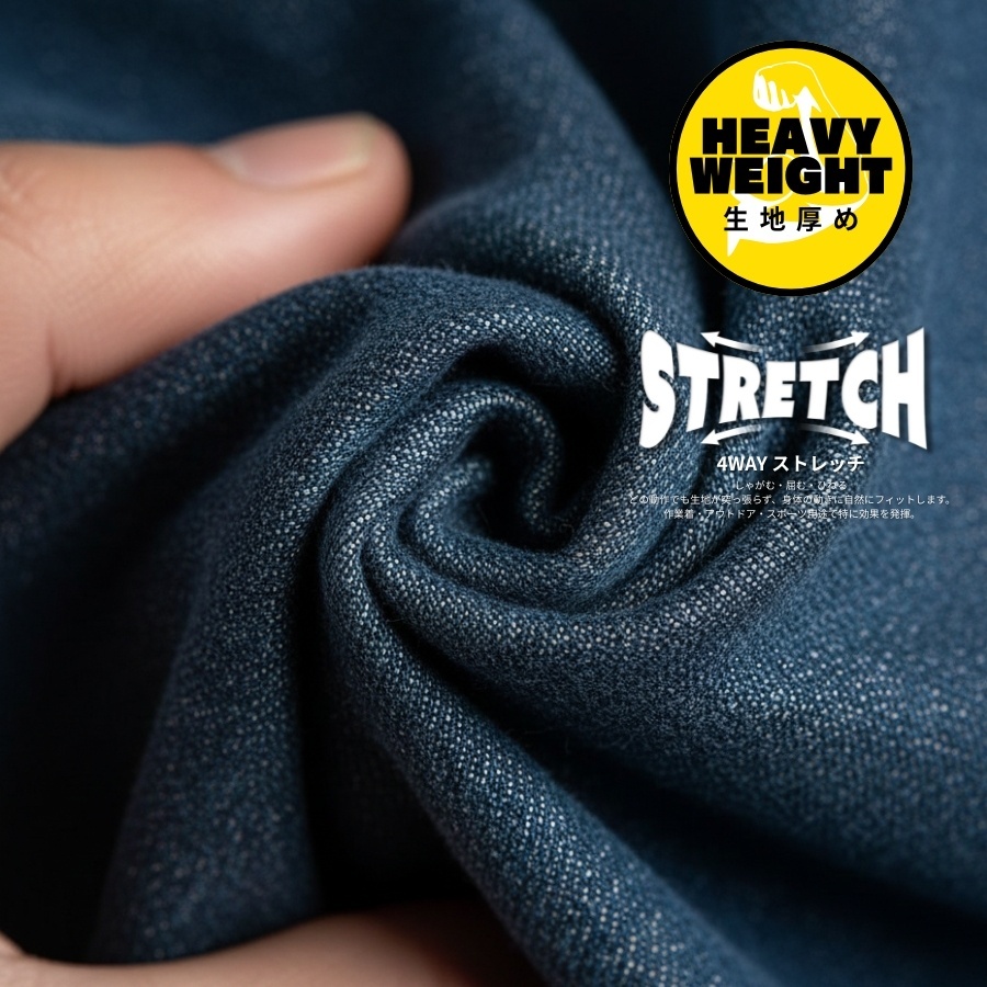 ヘビーウェイトな生地厚と動作性を損なわない高いストレッチ性を両立した、現場でガンガン使えるハードユース対応のコットンワークウェア。