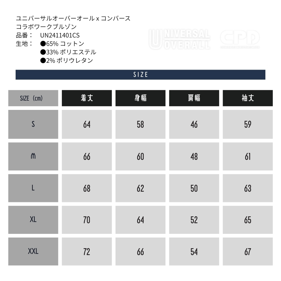 ユニバーサルオーバーオール x コンバース ワークブルゾン 作業着 作業服 おしゃれ かっこいい 上着 ジャケット UN2411401CS UN2411401CS
