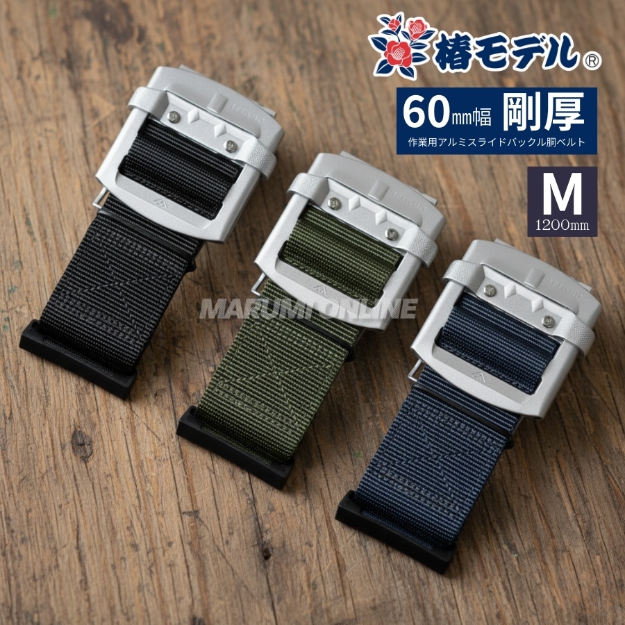 60mm幅 椿モデル 安全帯 胴ベルト 墜落制止用器具 工具の吊り下げ 軽量 アルミ製 スライド バックル ブラック グリーン ネイビー 12000mm Mサイズ