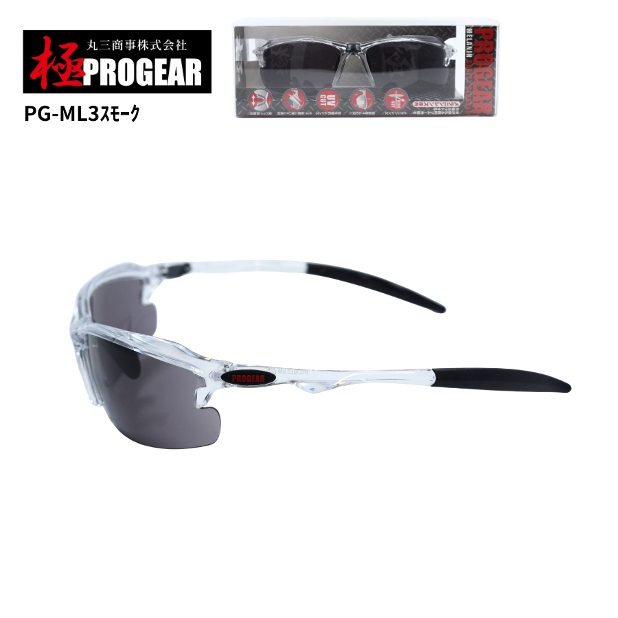 丸三商事 プロギア 【PG-ML3】 極PROGEAR 保護メガネ スモーク メラニンレンズ ハードコート 曇り止め加工 紫外線防止レンズ [PG-ML3]