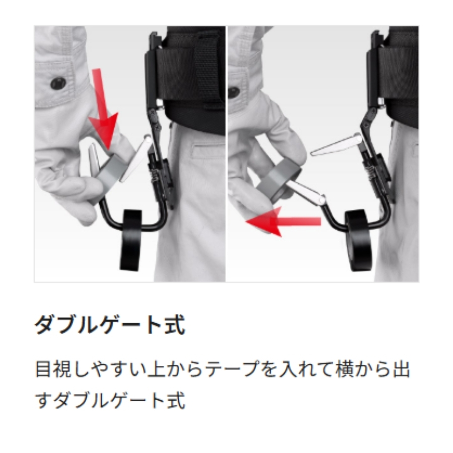 目視しやすいダブルゲート式のテープホルダー