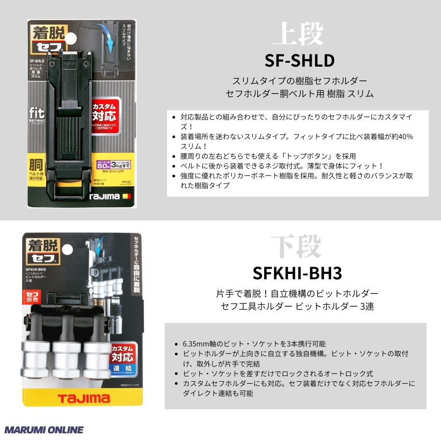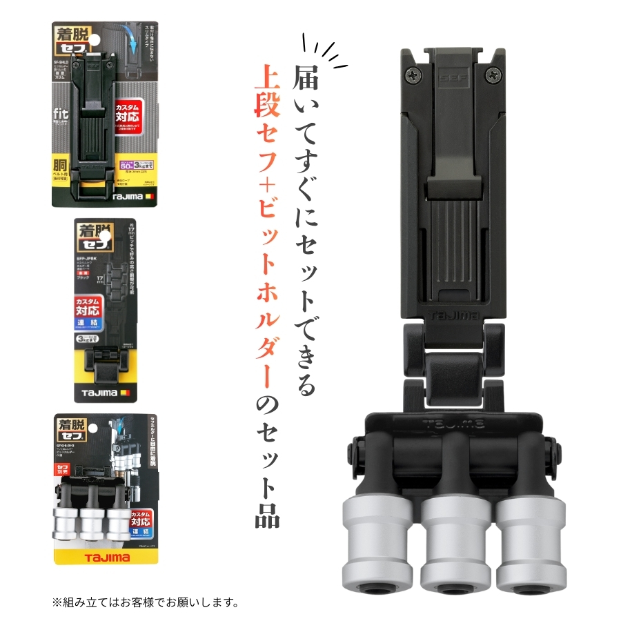 tajimaタジマ カスタム セフセット品 樹脂タイプ スリム 3連ビットホルダーセット SF-SHLD + SFKHI-BH3 + SFP-JPBK
