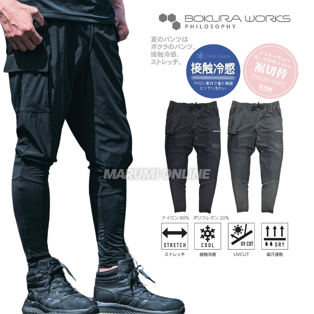 ボクラワークス 春夏 3629 裾レギンス ワーク ジョガーパンツ 裾切替 クール ナイロン 接触冷感 ストレッチ [KN3629]