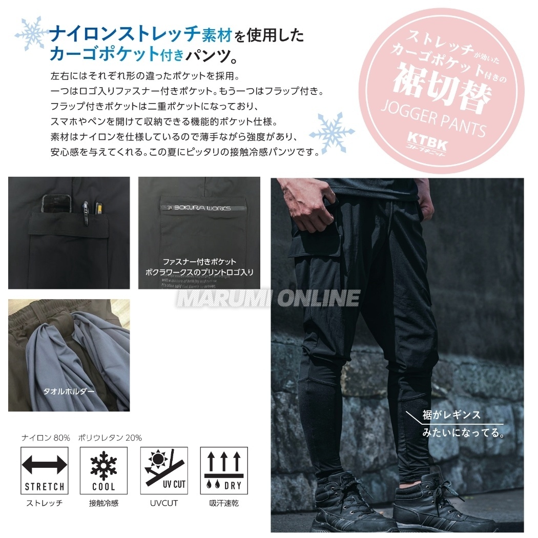 ボクラワークス 春夏 3629 裾レギンス ワーク ジョガーパンツ 裾切替 クール ナイロン 接触冷感 ストレッチ