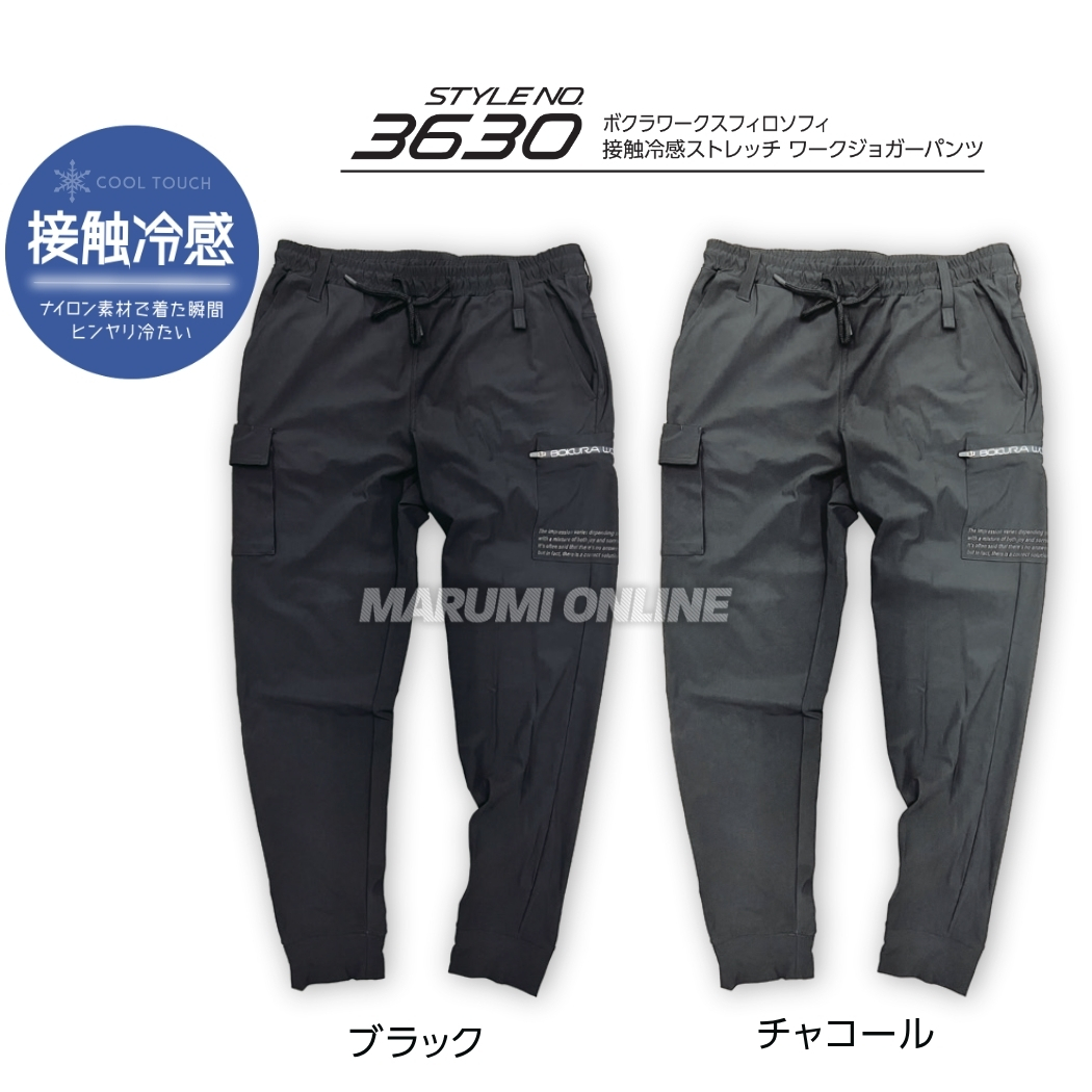 ボクラワークス 春夏 3630 カーゴ ワーク ジョガーパンツ 裾切替 クール ナイロン 接触冷感 ストレッチ