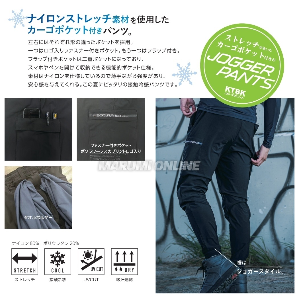 ボクラワークス 春夏 3630 カーゴ ワーク ジョガーパンツ 裾切替 クール ナイロン 接触冷感 ストレッチ [KN3630]