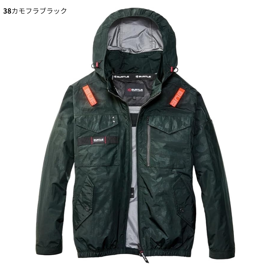 ヘルメット収納フード(着脱可能)、フックハンガー、背ランヤードホールを配備しフルハーネスに完全対応