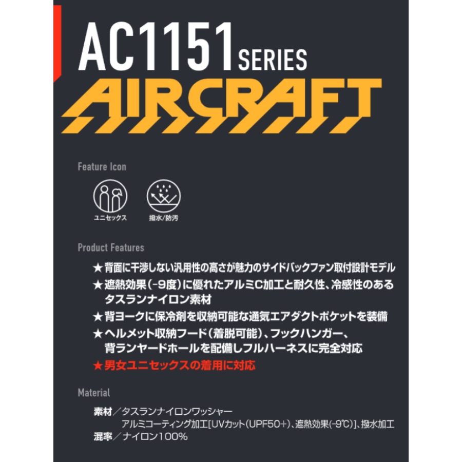 エアークラフト AIRCRAFT バートル 2026年モデル AC1156 サイドバックファン 半袖 空調服 作業服 フルハーネス対応 ポリエステル素材 UVカット Burtle