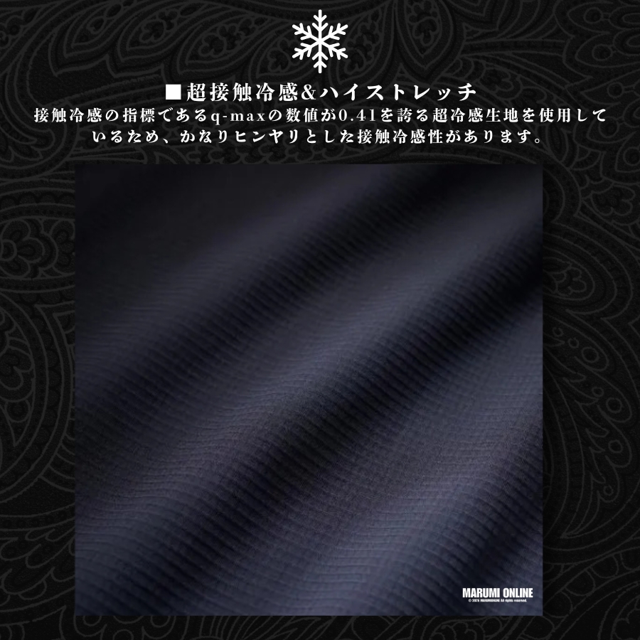 接触冷感の指標であるq-maxの数値が0.41を誇る超冷感生地を使用しているため、かなりヒンヤリとした接触冷感性があります。