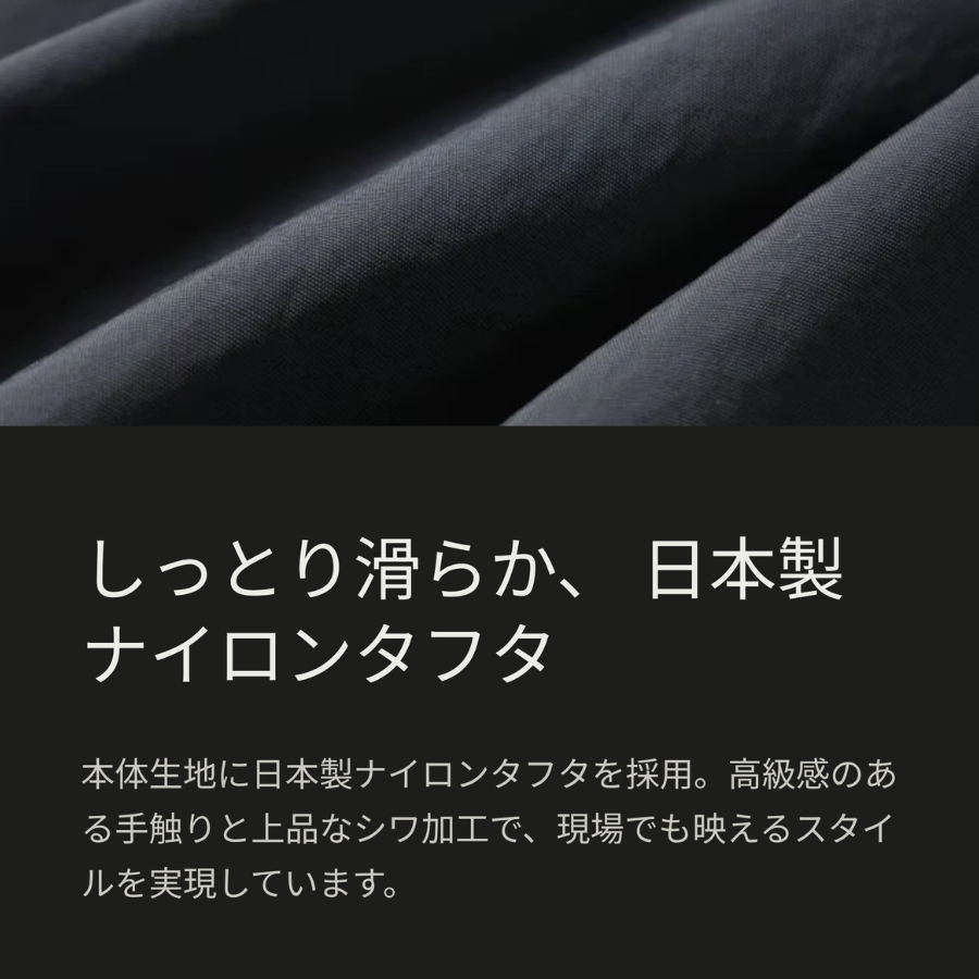 本体には、しっとり滑らかな手触りが特徴の日本製ナイロンタフタを採用。