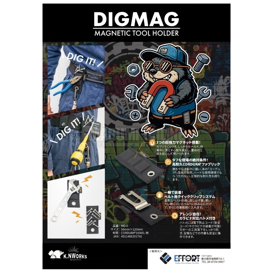 マルミオンラインショップ コーデュラ CORDURA エホート EFFORT DIGMAG ディグマグ マグネットホルダー 工具やビスの仮置きに コンパクト 強力マグネット 腰袋やベルトに装着 MG-O