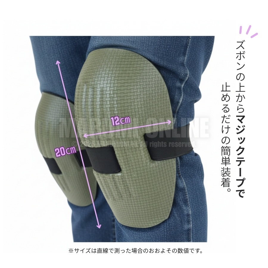 現場作業やDIY、整備、内装工事など、膝をつくことが多い作業に最適な軽量タイプのニーパッドです。