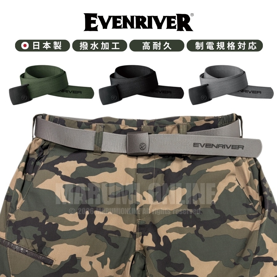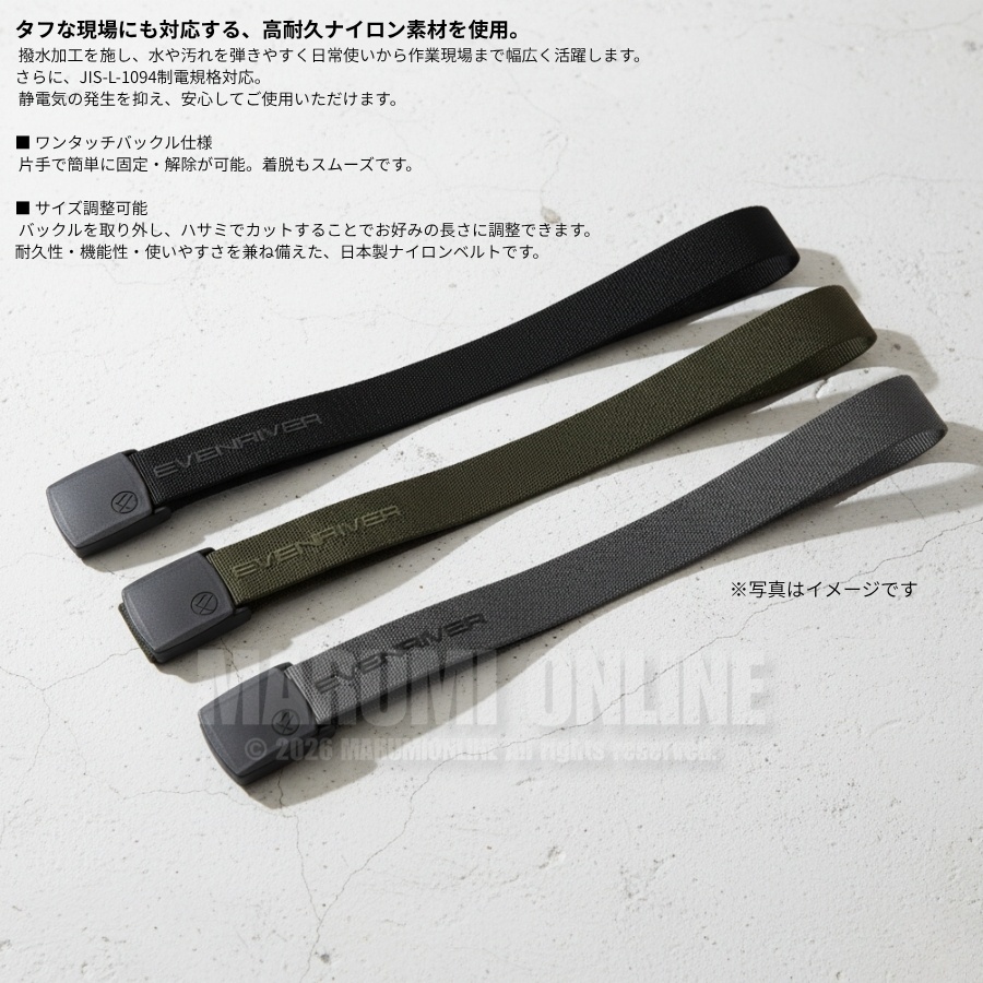 イーブンリバー 撥水加工 ベルト JIS 制電規格対応 高耐久 ナイロン 120cm ワンタッチ バックル 日本製 RB04