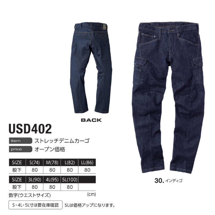 イーブンリバー 作業着 作業服 ワークパンツ パンツ 作業ズボン ボトムス ストレッチ デニム のびる かっこいい おしゃれ EVENRIVER USD402