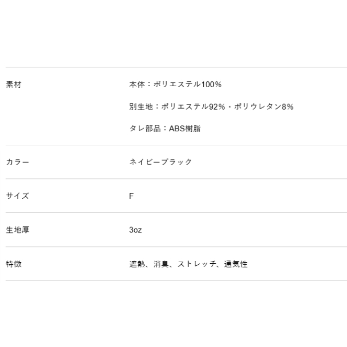 特徴 遮熱、消臭、ストレッチ、通気性